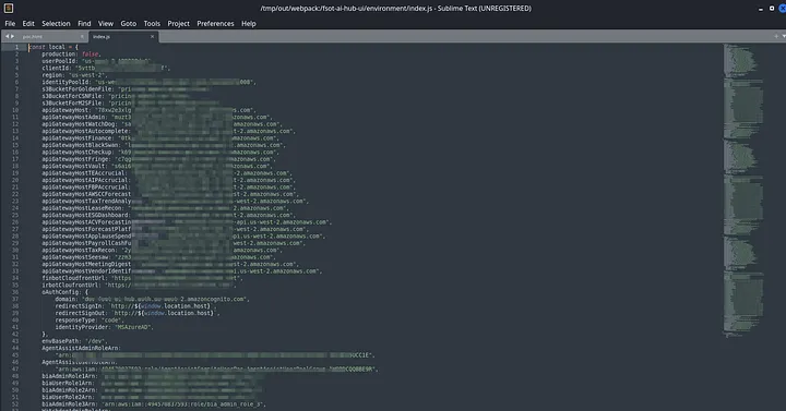 Then I opened the out/ directory and found a index.js file under environment/ Directory with the Whole AWS Cognito Credentials leaked: