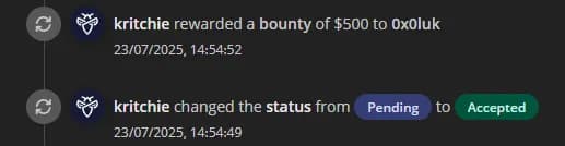 I quickly produced a PoC for this finding and submitted a report to the company’s program. After 6 days in triage, my submission was accepted, and I received a reward of $500 for this finding.