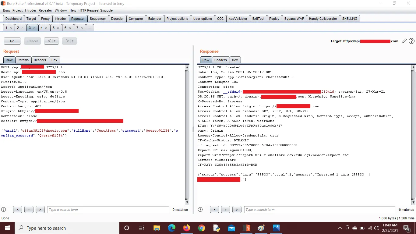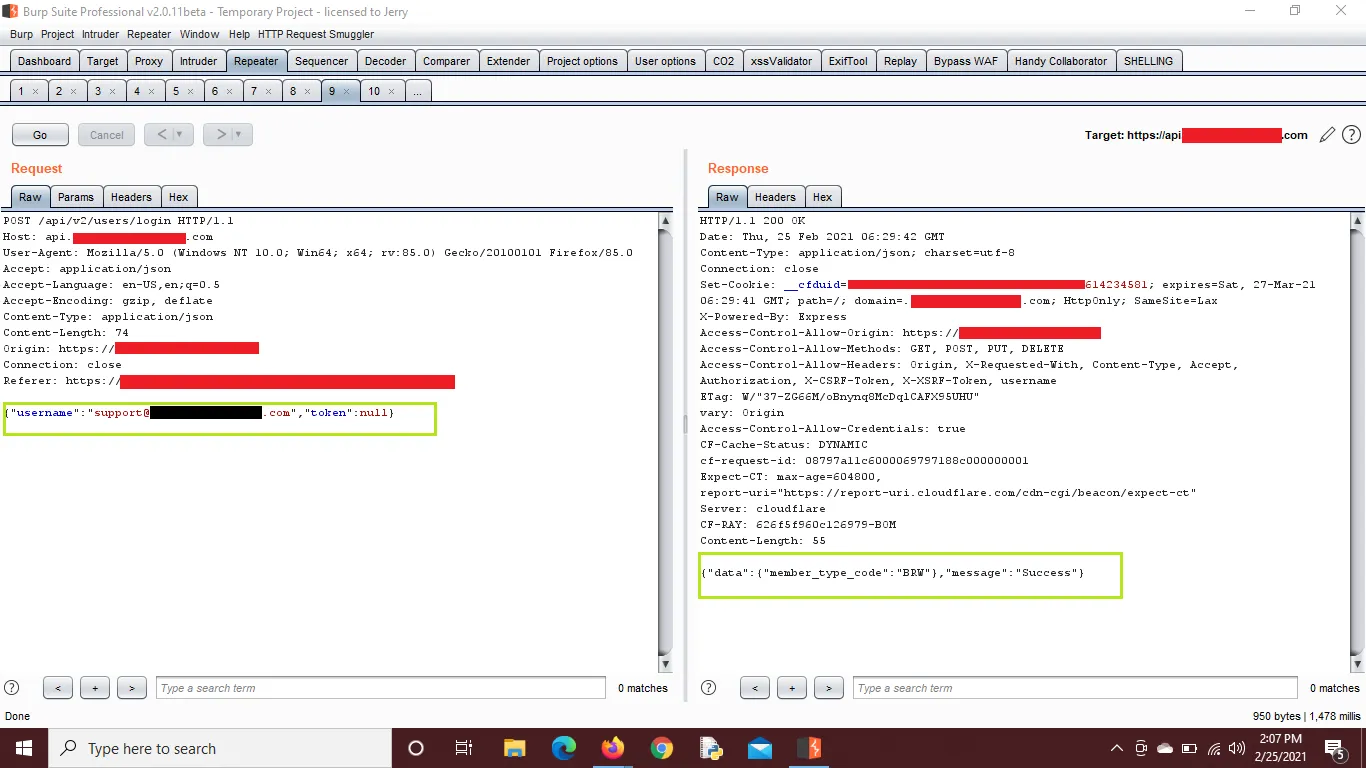 I thought of taking over an account of support@comany.com so I went further and tried to signup using the support email at first but as usual the account was already created, so I went to login function > chose the option of token > captured the request using burp > sent it to repeater > entered the value null in token parameter and got a successful login.