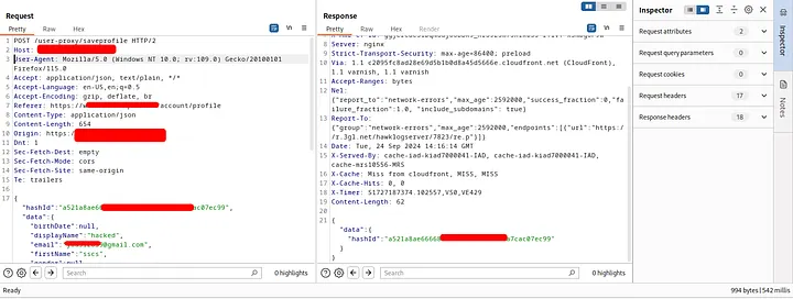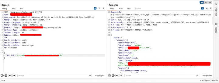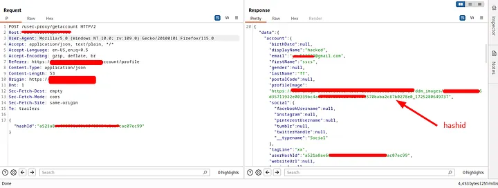 After reviewing the app again, I found that they had removed the hashId from the profile image url and used new domain to host user’s image (if you upload your image the url will be clean) and added a jwt token in the cookie header(when trying to update profile information using hashId only(vulnerable request), the request didn’t work. all the dashboard actions require the jwt token).