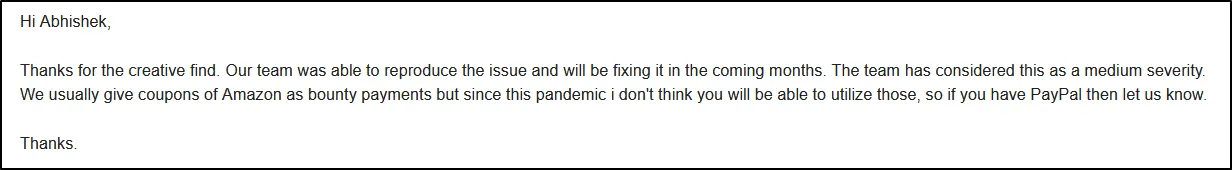 I hope you all are doing well in this lockdown. I kinda have a hard time concentrating on bug bounty for now cause of staying home all the time. Usually I go play football once a week but since the lockdown cant go out no more. I still managed to find few bugs during this time. Found a few XSS and 2FA bypass. But for now ill share just the 2 bugs that I found.