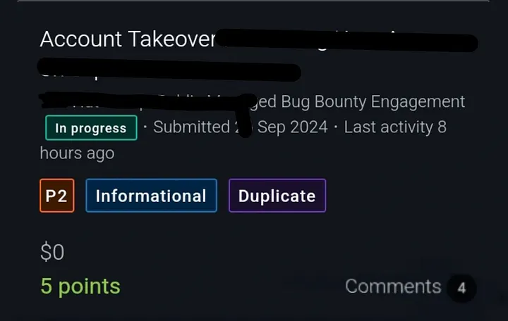 but yeah, of course happy endings only happen in movies. My report was marked as a duplicate of another pre-account report submitted four days before me, saying it was the same root cause (OAuth misconfiguration).