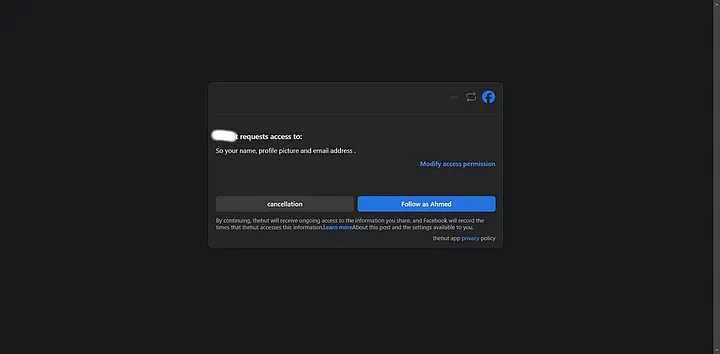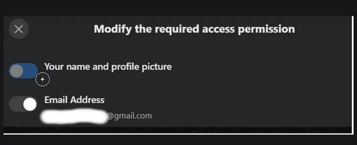 then, I clicked Continue to proceed with the login without sharing my email. After disabling email sharing, the target site prompted me to provide an email address since it couldn’t retrieve it from Facebook.