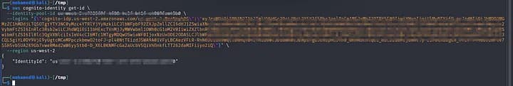 Now, Lets get the IdentityId token that is used to optained AWS AccessKey and SecetKey: