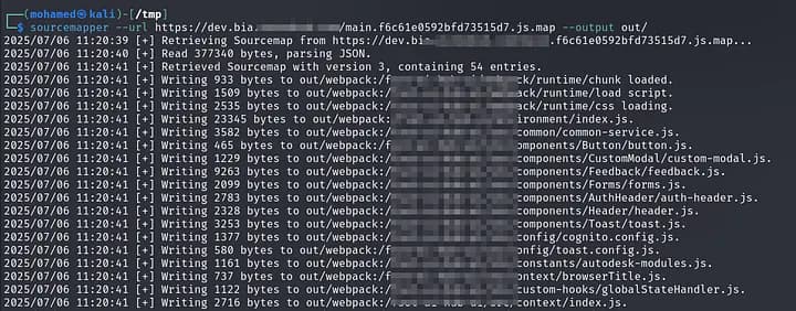 The JS file was typically refers to a source map file, which is generated when a JavaScript file is minified, transpiled, or bundled. So I used a sourcemapper tool to extract JS source trees from the file and make it more readable: