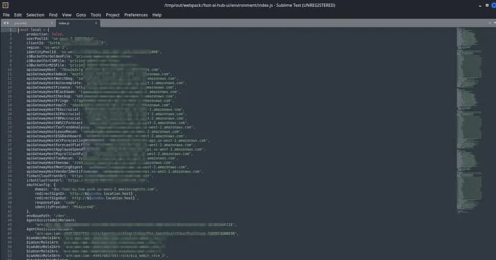 Then I opened the out/ directory and found a index.js file under environment/ Directory with the Whole AWS Cognito Credentials leaked: