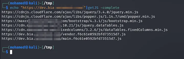 Then I decided to take a look at JS file. So I used a getJS tool in this section.