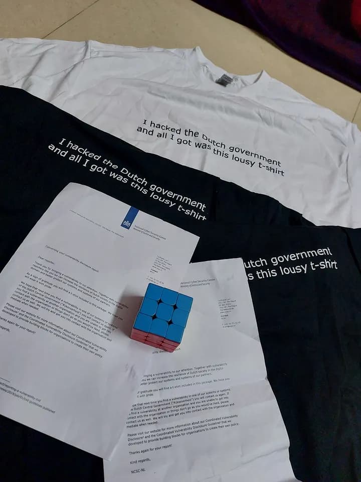 At a security conference, I spotted a guy sporting a t-shirt with the words “I hacked the Dutch government and all I got was this lousy t-shirt.” Intrigued, I approached him to ask how he got it. I was determined to get my hands on that cool swag.