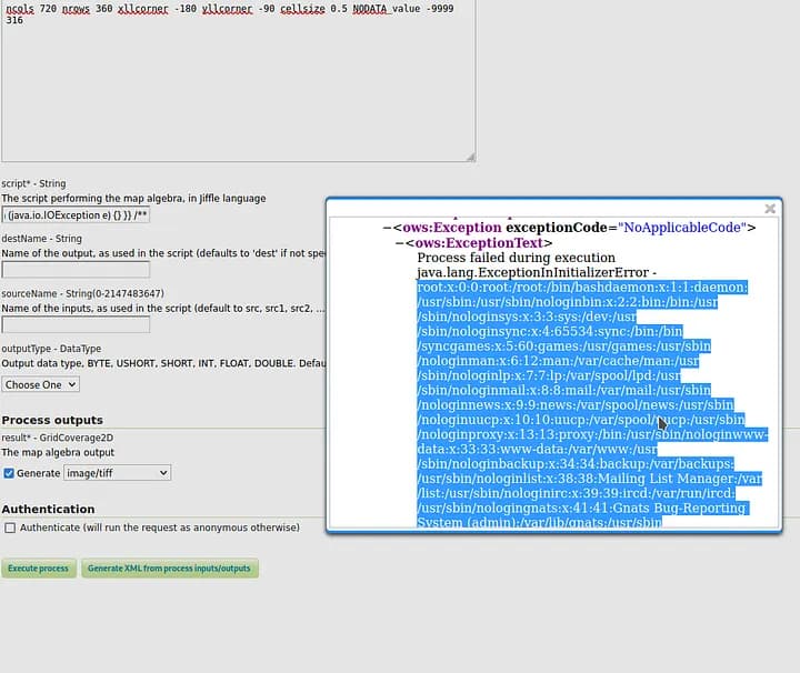 The vulnerability lies in the JAI-EXT library’s handling of Jiffle scripts, a map algebra language. Jiffle scripts are meant to be compiled and executed securely within a controlled environment. However, due to improper validation, malicious Jiffle code embedded in an image or other data could be injected and executed on the vulnerable system. This malicious code could then take advantage of the Janino Java compiler used by JAI-EXT, ultimately leading to remote code execution (RCE) with full system privileges.