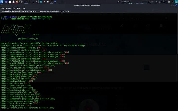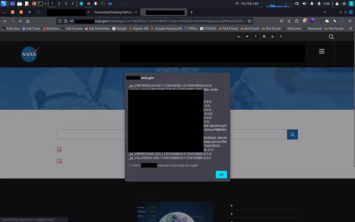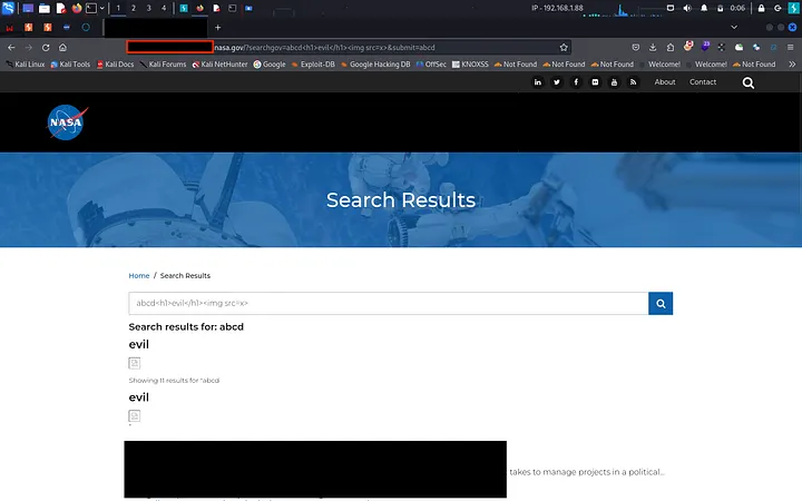 The output file revealed five successful XSS hits. I opened them, and there it was a shiny, exploitable XSS vulnerability on a NASA subdomain.
