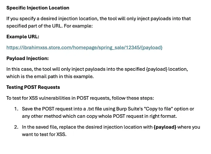 That’s why i’m Choosing IbrahimXSS aka xss0r. I noticed one more Usage: I could inject payloads directly by tagging {payload} in the requests, This one is so useful to POST Requests.