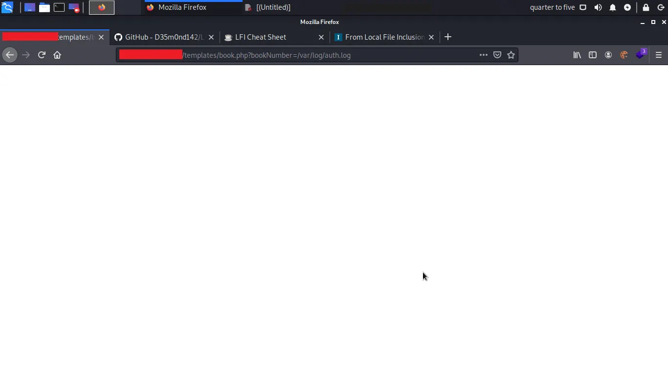 As you can see port 21, 22 and 80 were open so I thought of doing a log poisoning on ssh login but unfortunately the /var/log/auth.log file wasn’t accessible on the web so I thought that it is not possible to achieve Remote Code Execution.