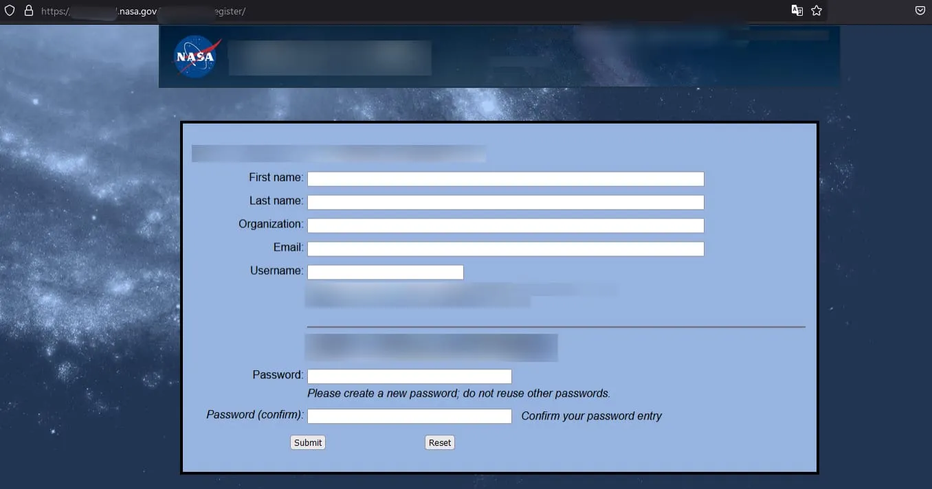 Let Suppose the subdomain and the endpoint was: https://xxx.nasa.gov/xxx_register/
